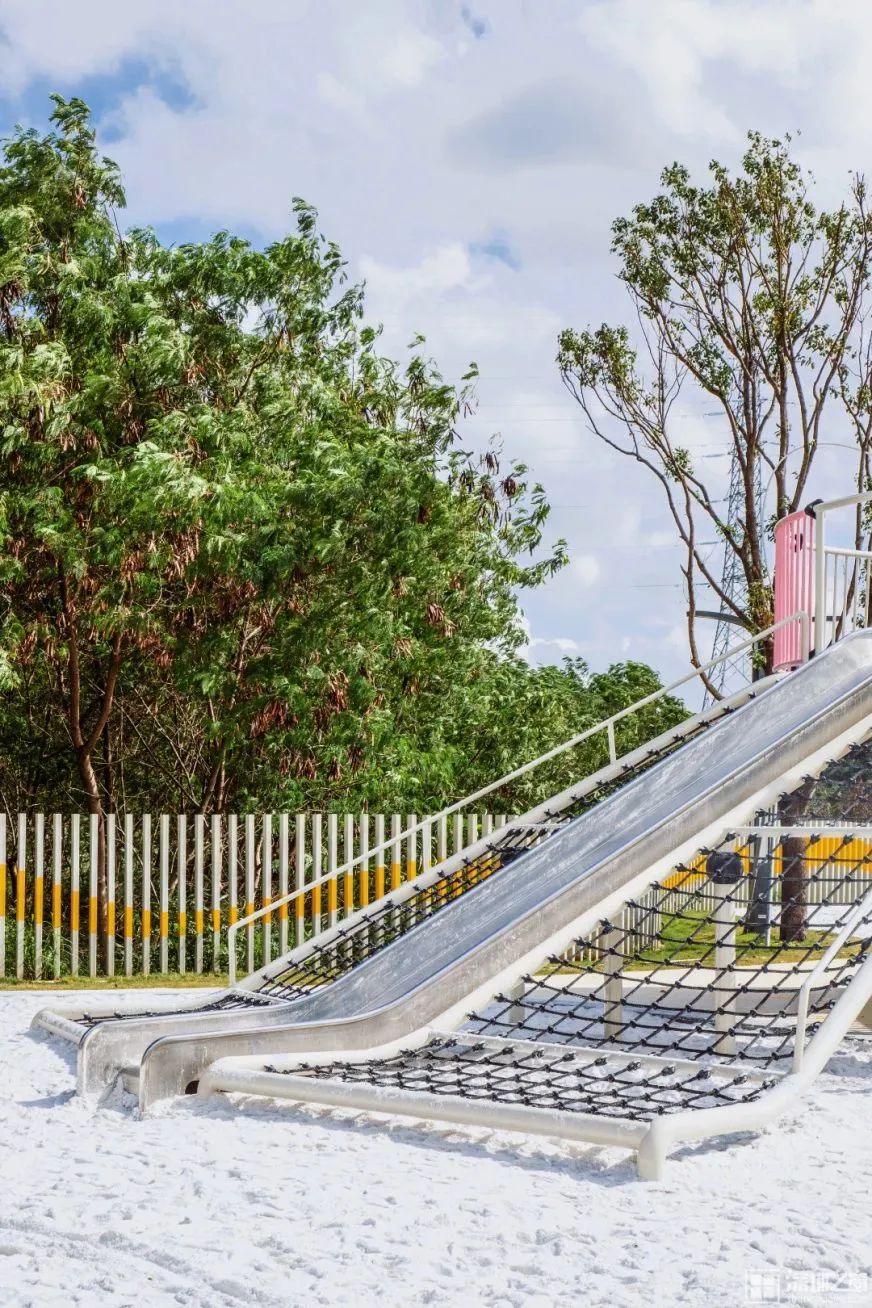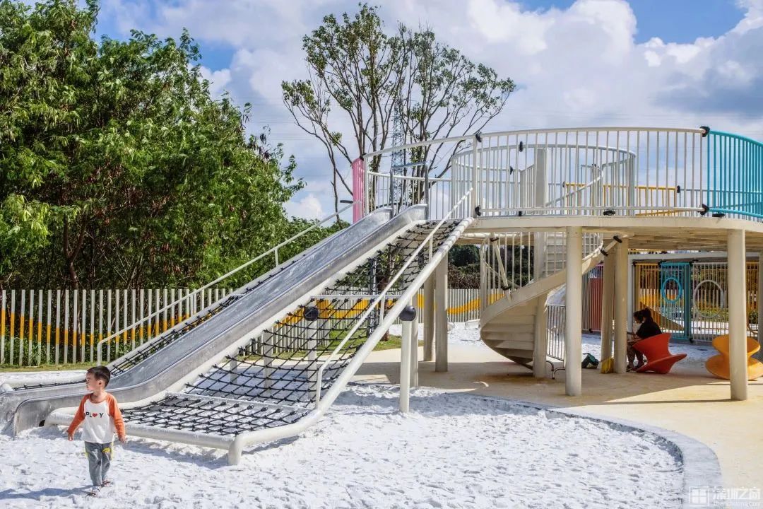 除了美出天际的廊架,公园内还有适合1到6岁儿童的儿童活动区。活动广场上有诸多适合孩童游玩的设施,各位家长可千万别让自家的小朋友错过了!