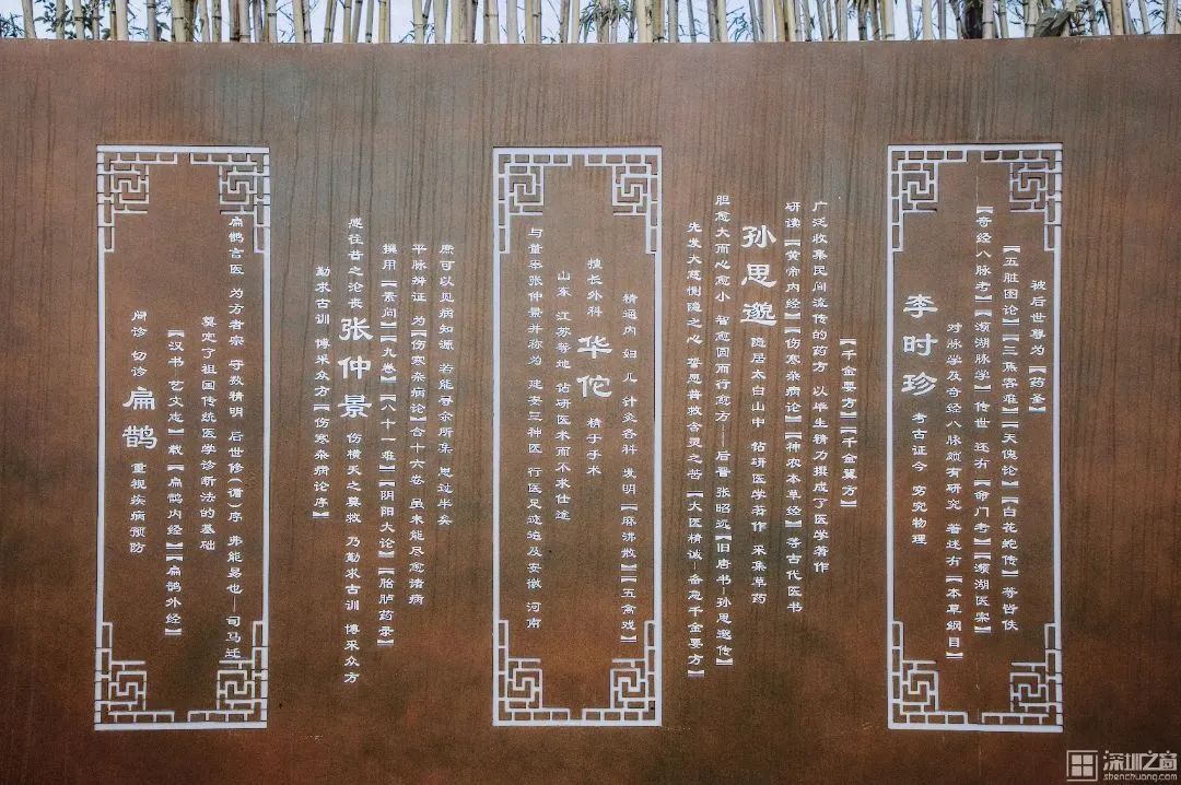 百草园结合周边资源,以中医院为契机,将中草药作为公园的主景,竟颇有苏州古典的韵味!黑色的牌匾、行笔潇洒飘逸的刻字,展现着中华文化的艺术与精华。