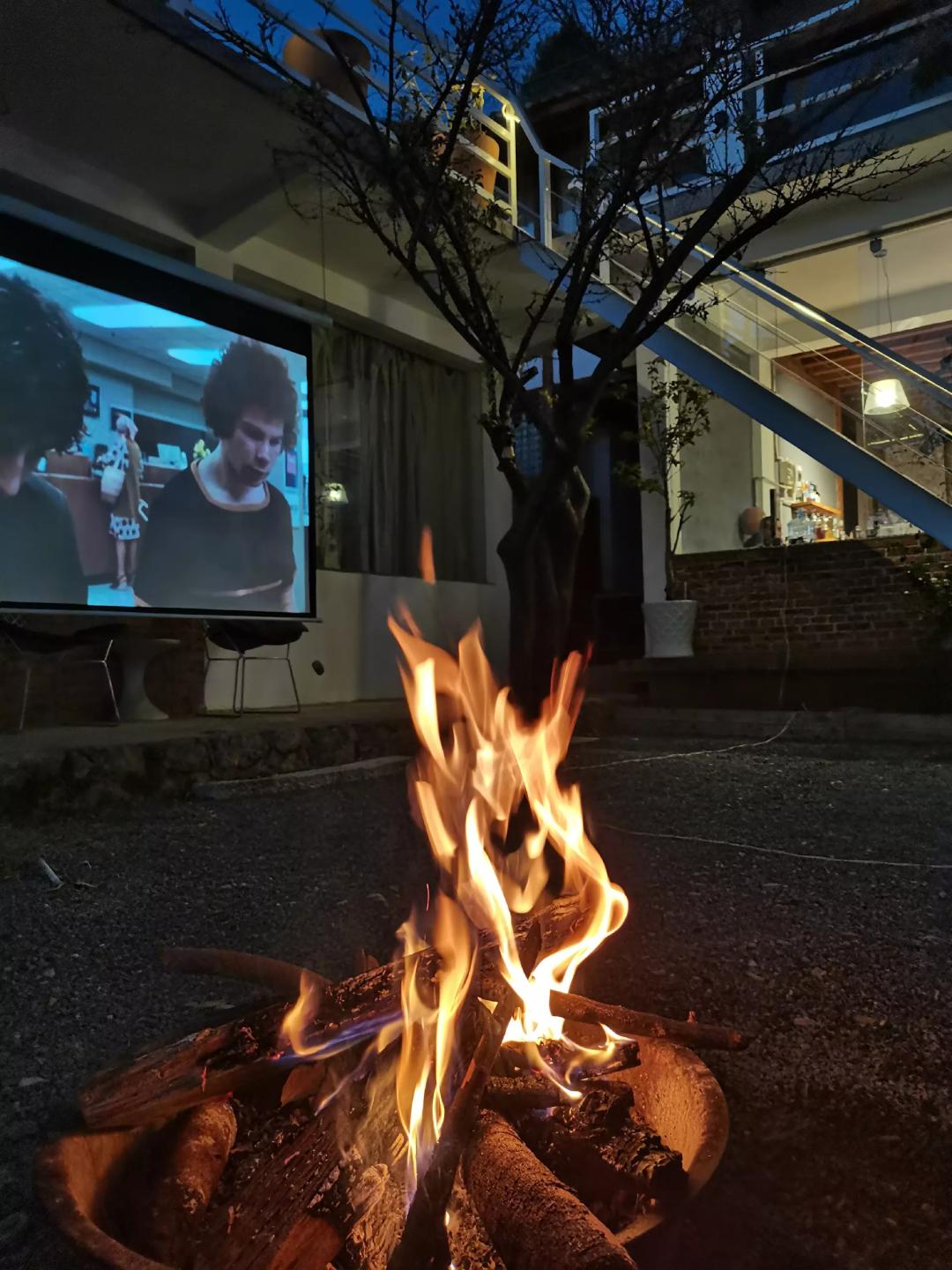 民宿院子里的篝火和露天电影受访者供图