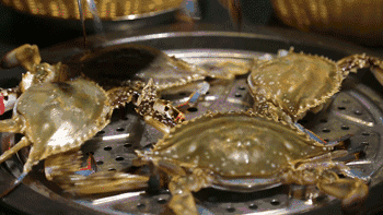 螃蟹越冷越肥,蟹膏又厚又鲜甜。梭子蟹在冬季徊游季节个体最为健壮,肉质细嫩,公蟹膏满油饱,不仅黏口香糯,肉质也透着清甜,而且蟹黄已经转化为清油,渗透于白膏之中,别提多香了。