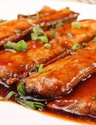 红烧带鱼是威海的一道家常菜。鱼肉嫩体肥、味道鲜美,除了中间的大骨外,鱼身便无细刺,很适合小孩子和怕鱼刺者食用。红烧带鱼肉质细嫩,枣红色,咸甜口。此菜色酱红光亮,鱼肉细腻鲜嫩,口味咸中带甜。