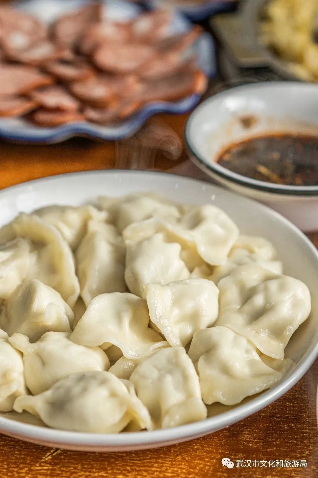 但不管是什么馅,听我的,一定要吃水煮的。等饺子上桌,关键动作请注意——第一口,请先尝尝饺子皮的口感,绝妙的晶莹Q弹,很难在武汉吃到同款。