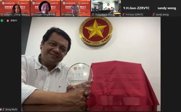 随后,在与会嘉宾的见证下,曼纽尔•穆希校长展示了菲律宾詹天佑学院标识,并为菲律宾詹天佑学院揭牌。在总结致辞阶段,副校长李福胜表示,此次合作是菲律宾理工大学对学校办学实力的充分信赖,相信两校合作一定能取得圆满成功,培养出服务中菲的高素质技能型人才,造福两国青年和社会。根据计划,菲律宾詹天佑学院将于2023年正式投入运营。