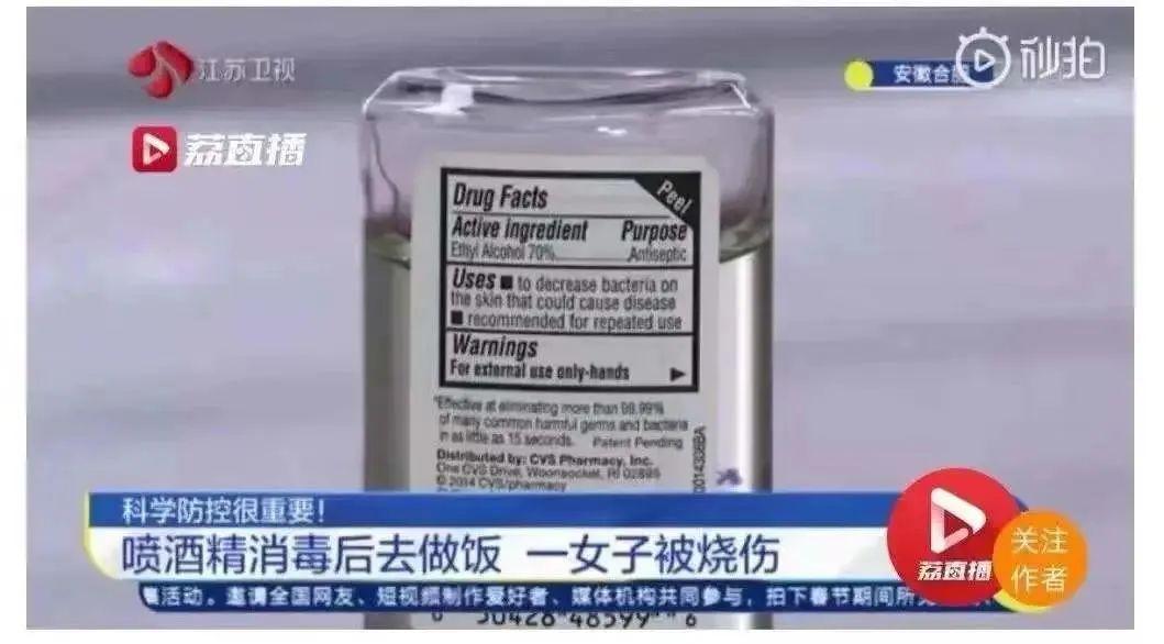 2020年2月5日,安徽省合肥市,王女士在用酒精喷雾给自己消毒后,进厨房做晚饭 ,不料酒精被点燃,被紧急送往安医大一附院烧伤科。(素材来源网络)