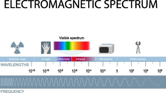 电磁波谱图,从左到右波长逐渐变大,频率逐渐减小。图库版权图片,不授权转载