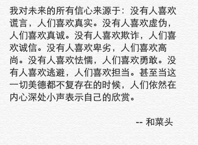 这个过程很难,我不是一开始就能相信别人讲的话,但我很多时候会很武断的,当我的想象跟现实有分歧的时候,我会武断地去相信,善的那一方。我时常拿这段话来勉励自己: