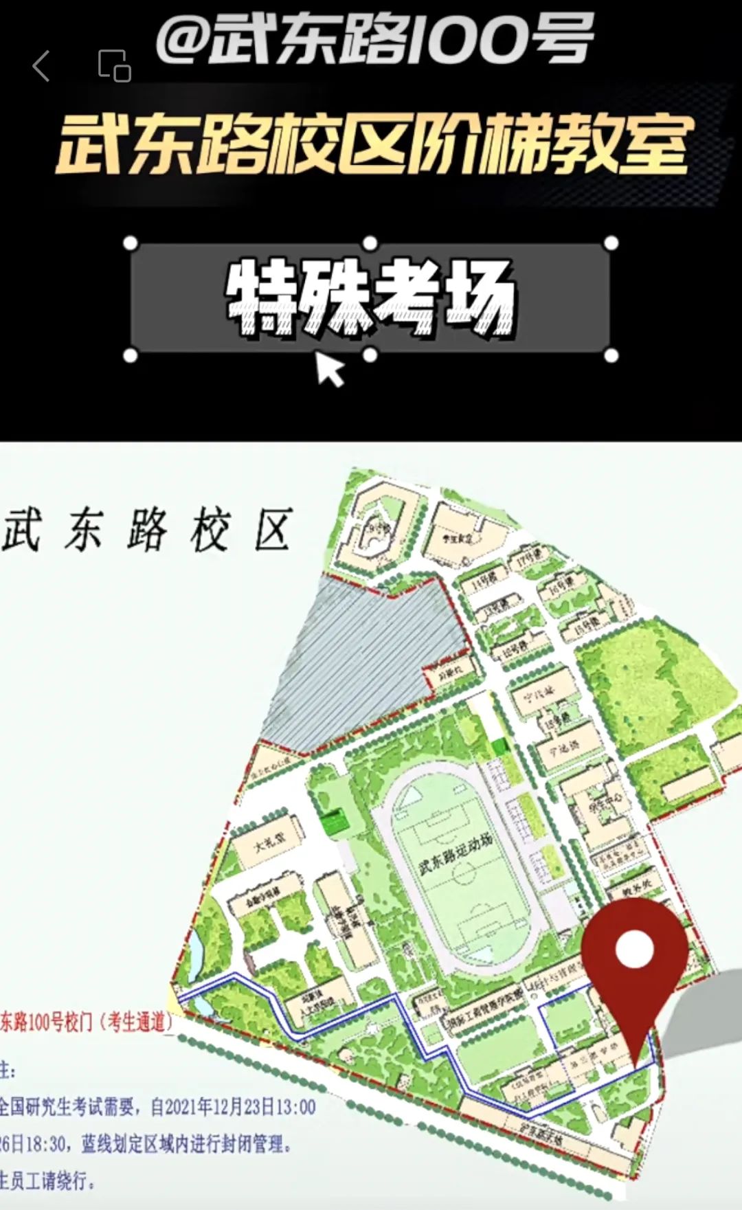 华东师范大学不同考场的分布和提醒。不少考生并非本校考点的学生,考点又因疫情防控无法提前向考生开放“踩点”。为方便考生快速准确入场,上海外国语大学研究生院精心制作了详细的讲解视频,涉及进场路线、考场具体位置、休息场所等。因涉及教学楼多、楼层也较多,上外研院制作指引牌以及立体的考场门贴,还在每个考场外特意铺设了一张塑料布,供考生放置随身物品。