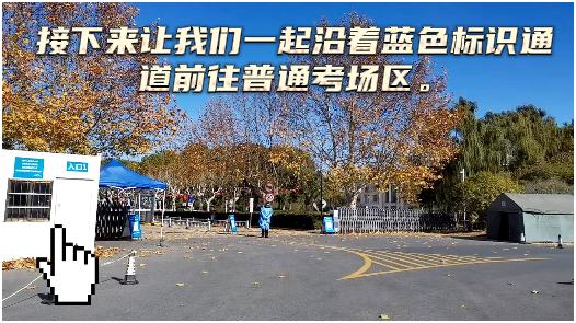 上海外国语大学普通考场进场通道。华东师范大学在考试当日早6:30起就开放校门,普通考生须佩戴口罩从闵行区东川路500号(南门)或莲花南路5005号(西门)凭本人有效居民身份证原件、核酸报告,经体温测量正常(<37.3°)后进入校园。若两次测量体温≥37.3℃,现场工作人员将安排考生在指定专用的应急考场参加考试。