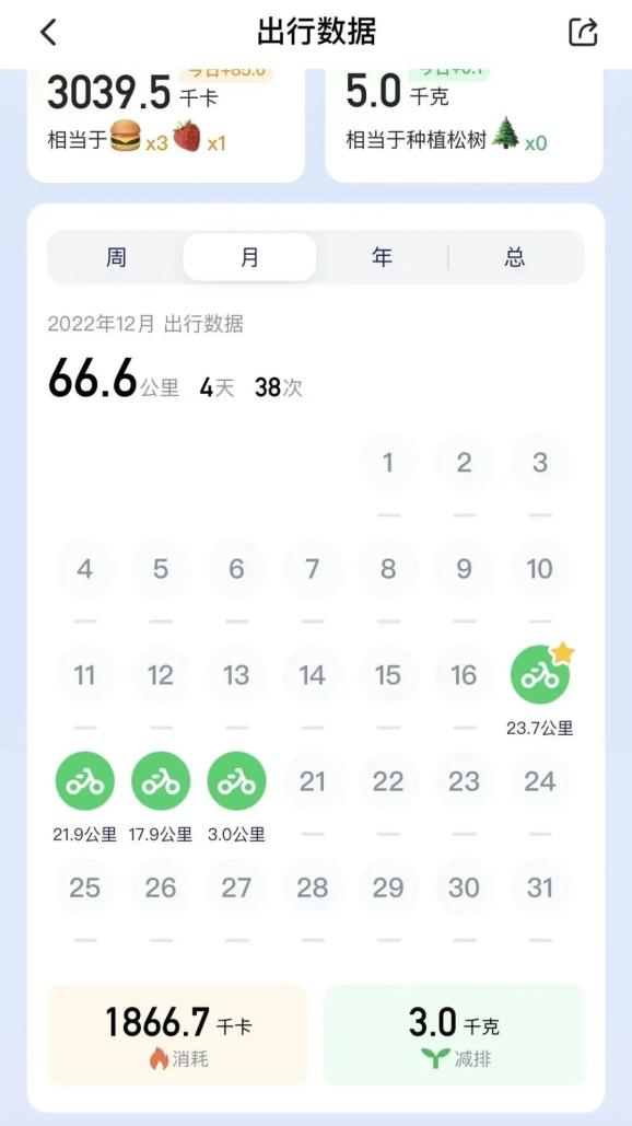 琳达的共享单车数据我一般只骑一个单车,出来三四个小时,中途不会换车,共享单车的后台有记录跑的距离,第一天是23公里,昨天是21公里,今天(12月19日)稍微时间少一点,今天只有十七八公里。这三天我一共送了31单,平均每天10单。我第一天都只是送一单,从第二天开始尝试送两单的。
