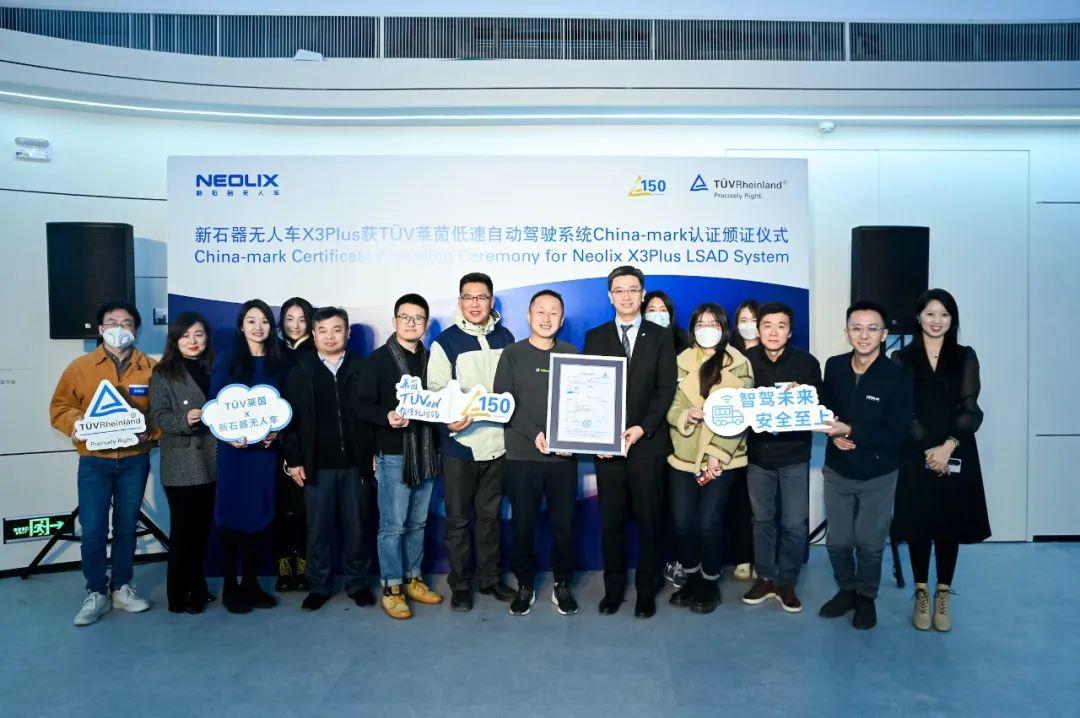 12月22日,国内首个低速自动驾驶系统性能测试认证在北京经开区举行颁证仪式。在活动中,国际独立第三方检测、检验和认证机构德国莱茵TÜV大中华区(简称TÜV莱茵),为新石器无人车X3 Plus颁发“低速自动驾驶系统性能测试”China-mark(中国标识)认证证书,这是国内首张L4级自动驾驶系统国际安全标准认证证书,助力“亦庄经验”的又一次输出。“这标志着中国低速无人车企业对标国际标准、提升质量水平的一次重大突破,将加速推动L4级自动驾驶技术创新和大规模商业落地。”该公司营销副总裁徐其远说。