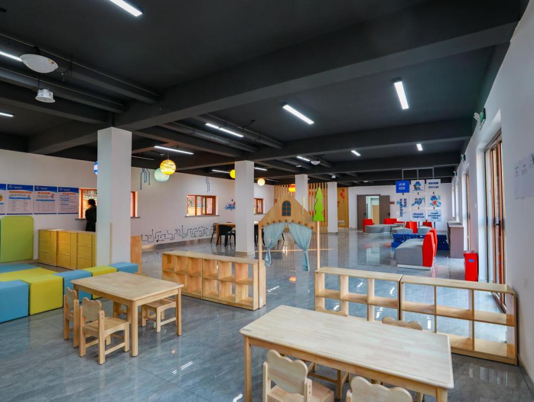 缤纷未来社区建立儿童参与的多方议事制度,线下线上联动,传播儿童友好理念与儿童意见收集。社区按照不同年龄段儿童设置不同室内外活动空间,如缤纷托育中心规划运营涵盖0-9岁孩子的托育园、成长驿站、幸福学堂功能;启动“通学路”项目,为孩子们的上下学保驾护航。