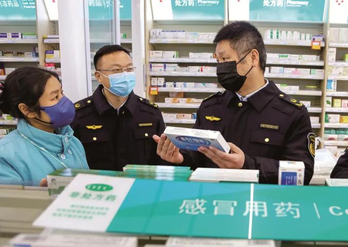 △12月23日,市市场监管局执法人员正在一家药店进行检查。(记者 王健民 通讯员 王春 摄影报道)