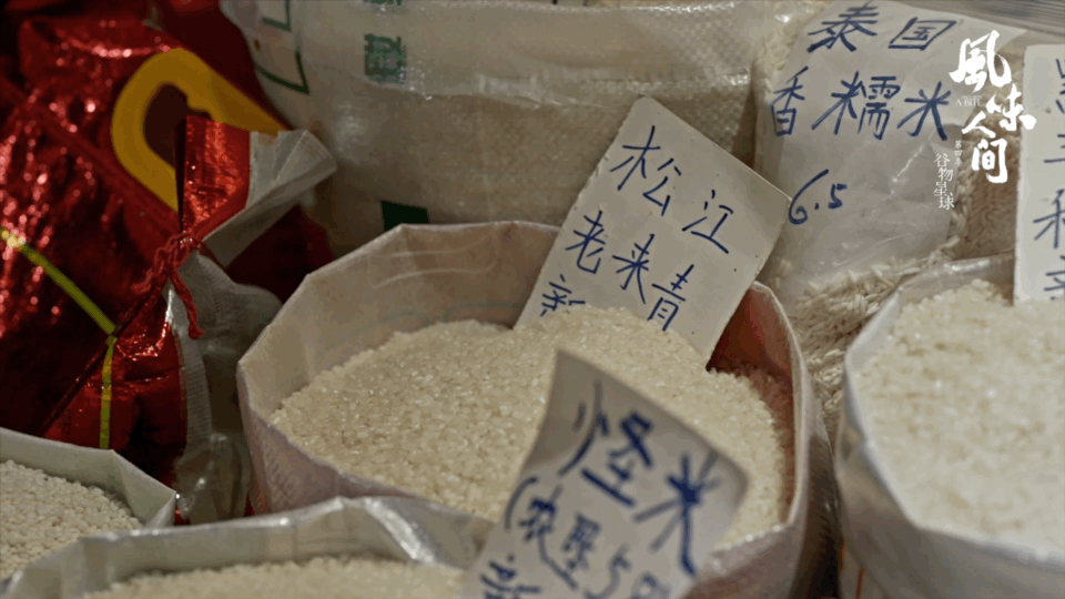 ▲ 在今天的上海菜市场,能看到来自五湖四海的稻米济济一堂,以不同的特点优势吸引着不同的食客(图|《风味人间第四季》 ©)
