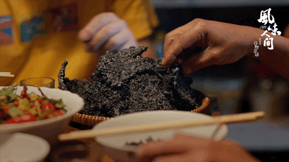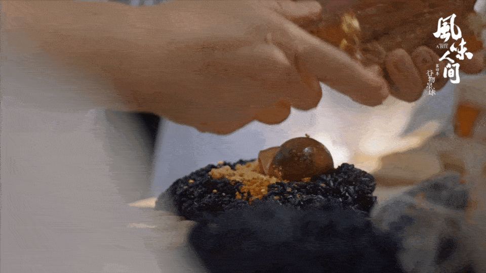 ▲ 乌米饭焦,糯米被反复精细加工后的另一种“小吃”形式(图|《风味人间第四季》 ©)