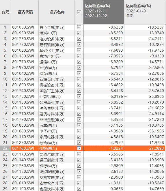 Choice数据显示,12月11日至22日期间,有色金属、煤炭、电力设备、建筑装饰板块跌幅超过8%。近两日,电力设备等板块表现不错。结合近期A股板块轮动表现,当前时点有何投资建议?