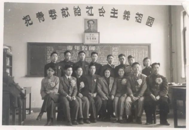 1956年4月1日,北京石油学院召开青年教职工社会主义建设积极分子大会,在大会上表扬了122名积极分子和一个优秀团小组。这是华泽澎与优秀团小组———青年团工程化小组的合影