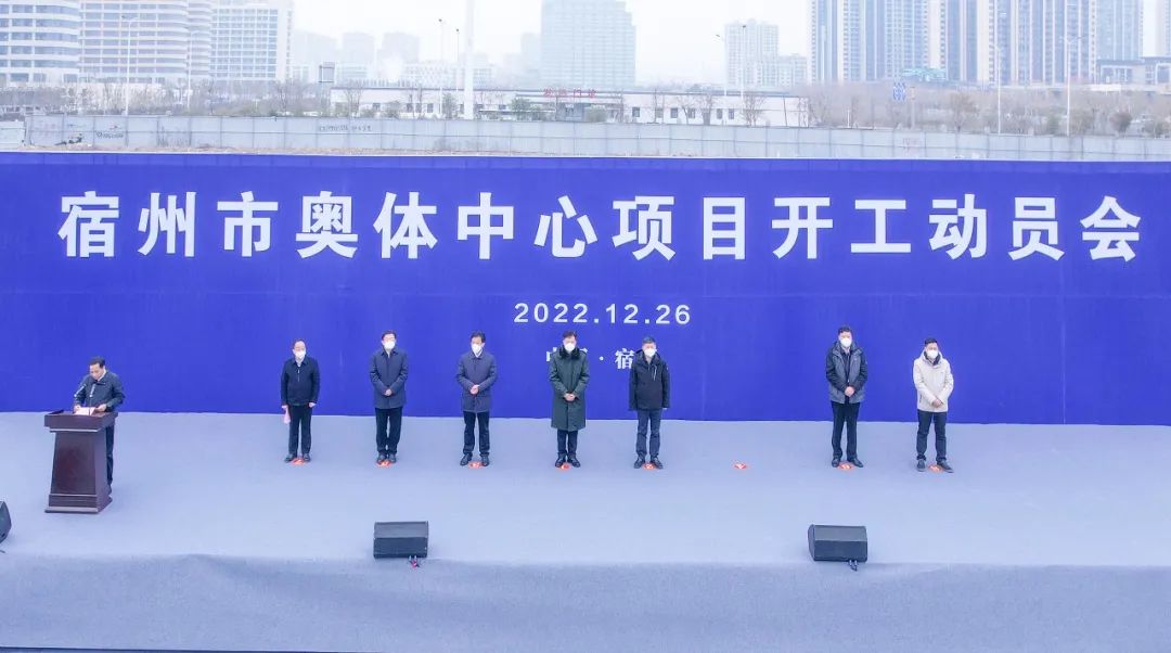 12月26日,安徽省宿州市奥体中心正式开工建设。宿州市委书记杨军出席开工动员会并宣布开工。宿州市委副书记、市长王启荣,宿州市委常委、宣传部部长、市委秘书长、市委国家安全委员会办公室主任(兼)李红,宿州市委常委、市政府党组副书记、副市长任东,宿州市政府党组成员、副市长刘博夫,中铁四局总经理韩永刚,中煤三建董事长郑玉建,北京华体集团运营总监张勇,中铁四局安徽区域指挥部、钢结构建筑公司、设计院、投资运营公司等单位负责人,宿州市有关单位和部门负责人参加此次活动。