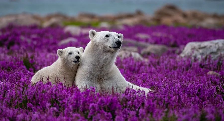 2022年11月,摄影师Martin Gregus拍摄的花海里的北极熊走红网络。