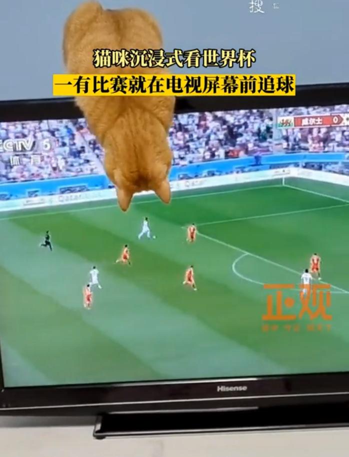 小猫“沉浸式”追世界杯2022年卡塔尔世界杯期间,湖北襄阳一位网友家的小猫“沉浸式”看球,是一只参与感极强的世界杯忠实球迷。