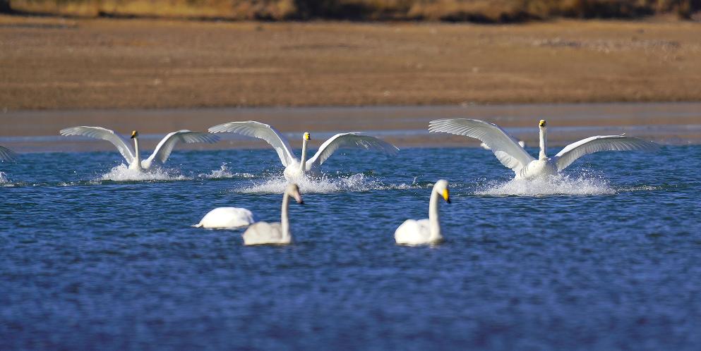 金川峡湿地是金昌市人饮工程保护区,位于永昌县金川东村与金川西村交界处,这里植被丰富,气候冷凉,是我市野生大天鹅重要的越冬栖息地之一。每年冬季都有上百只的白天鹅、黄鸭,从遥远的地方长途迁徙,到此栖息越冬。这些圣洁的鸟儿,或飞、或游、或走、或卧,千姿百态,构成一幅幅动人的画面。