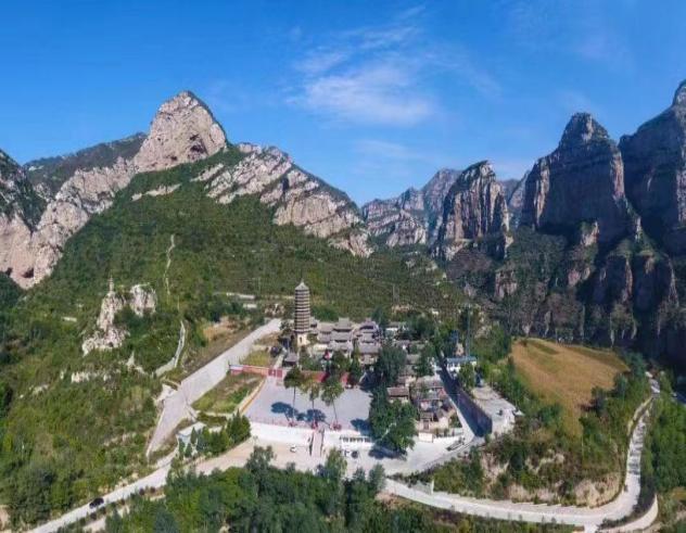 东望笔架山,西连老虎尖,北倚翅儿崖,南伏凤凰台,寺下唐河潆洄,喷珠溅玉,一幅如诗画卷,恍若仙境。