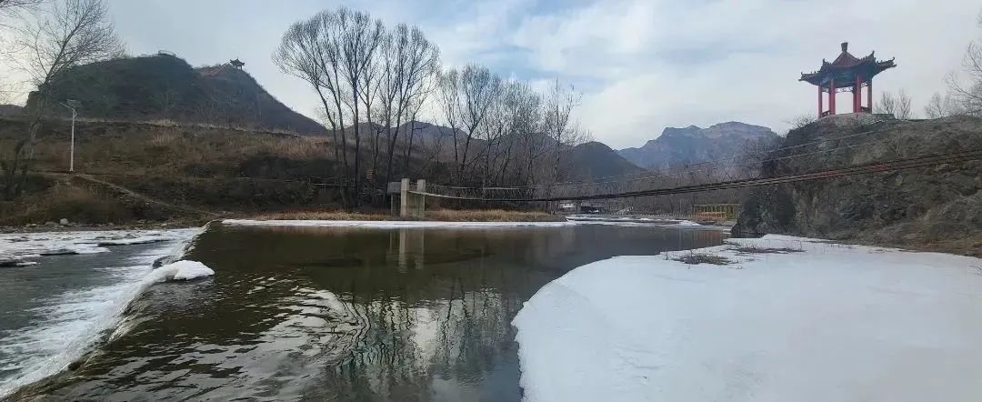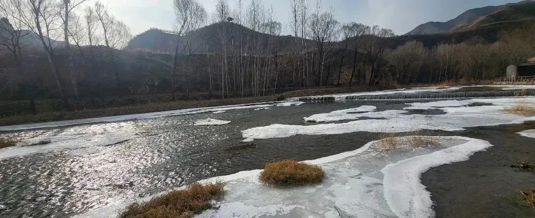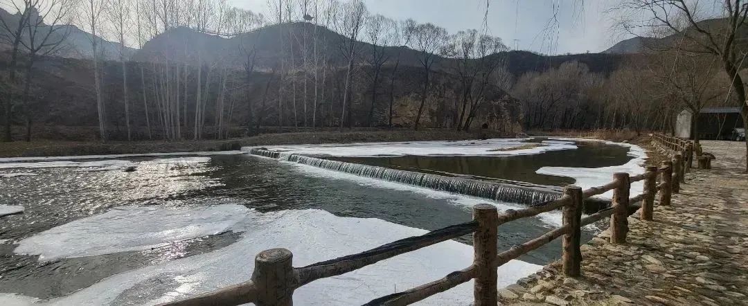 往日涓涓而动的绕村溪流,虽缺少了灵动,但仍清澈见底。薄薄的冰层浅浅地盖在水面上,依然能听到河水流动的声音,慢了缓了,也静了。沿着冻结的溪水,边走边看,说不定能捕捉到躲在冰下的小鱼小虾的身影~