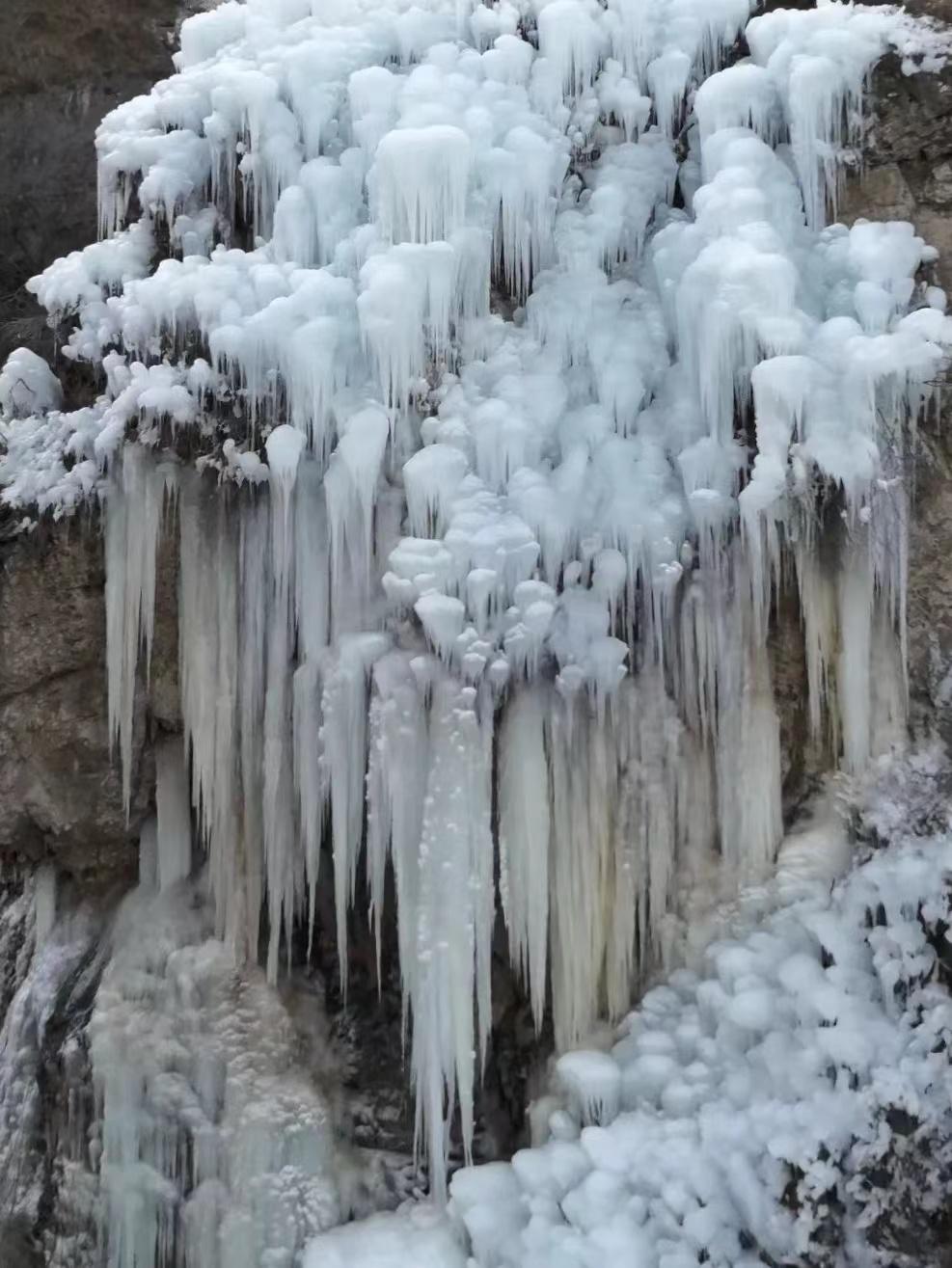 赏冰挂水墨美景