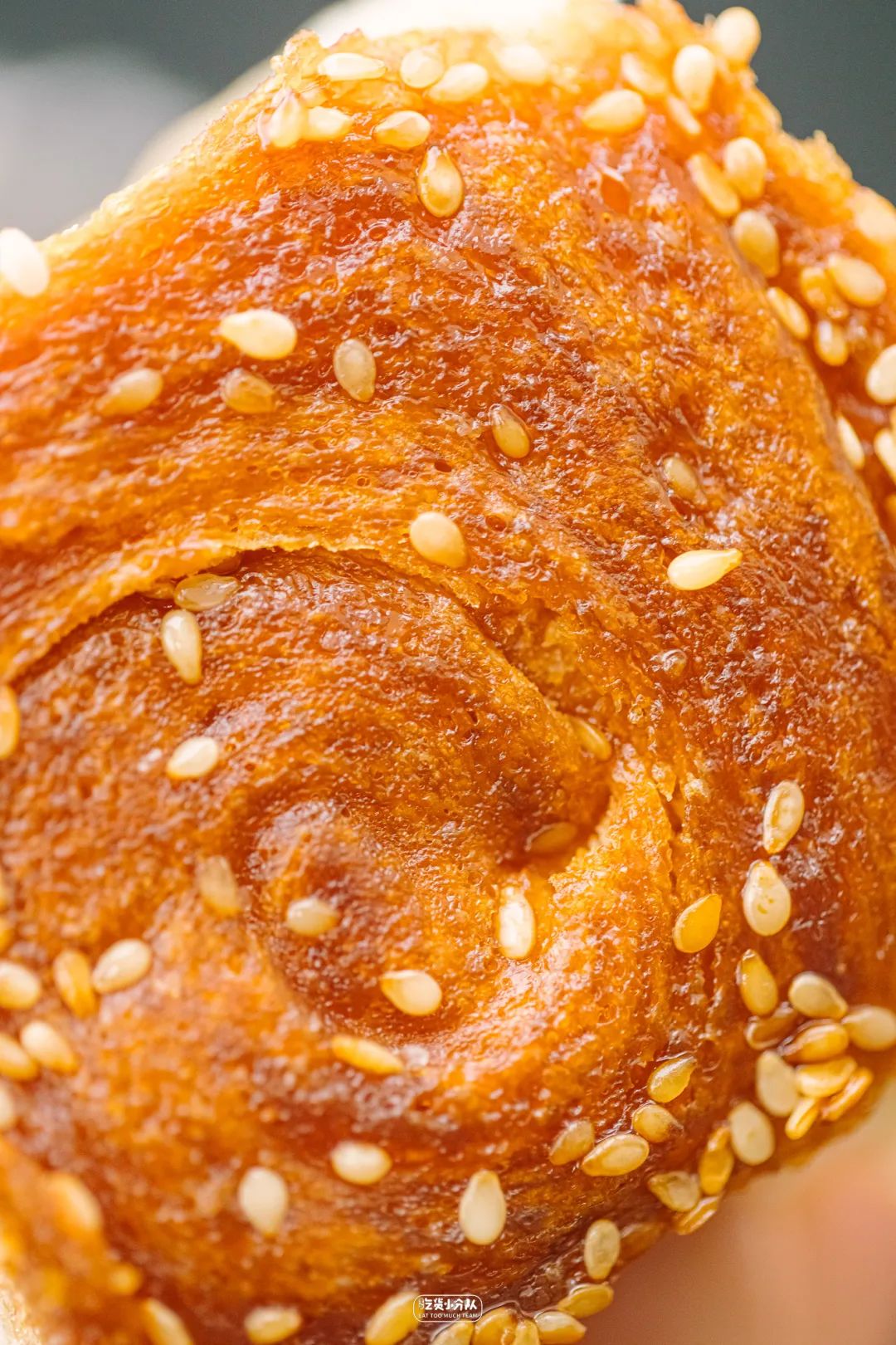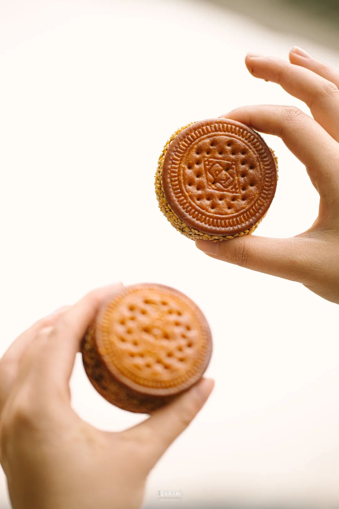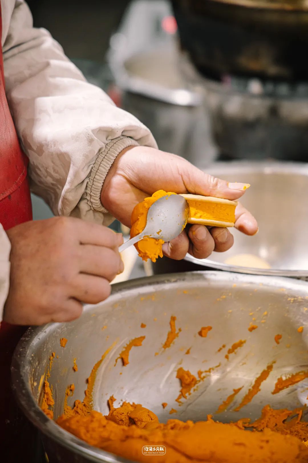 南瓜混合糯米的内芯,无比软糯。南瓜味道浓郁,整体黏黏的有嚼劲,配合酥饼干和相当有存在感的白芝麻,甜而不腻,外脆里糯,在口腔里会引起一阵火山喷发般的香味浪潮。