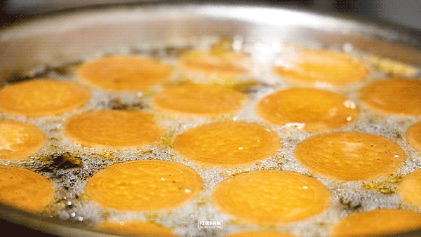 热油下锅炸,南瓜饼们在里头滋滋作响,慢慢变成金黄色。过几分钟有扑鼻的甜蜜香气飘出来,但还得眼巴巴等上一阵,老板说好那才算。“”