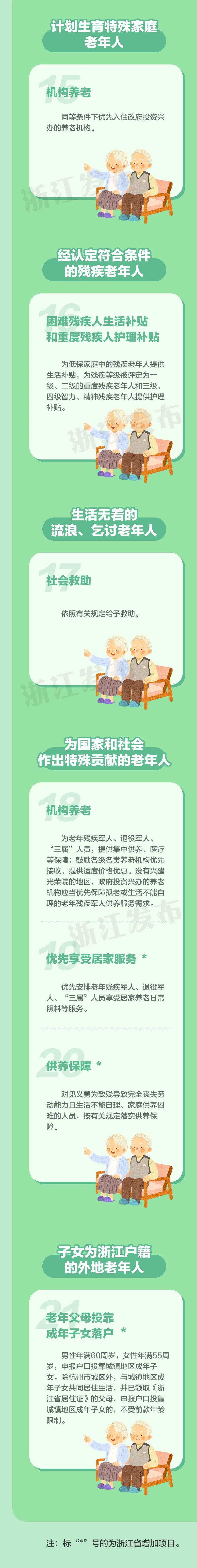 面向所有浙江户籍80周岁以上老年人精准发放高龄津贴,每人每月不低于60元,自2023年1月1日起执行,并根据经济社会发展水平定期调整。建立养老服务“爱心卡”制度。