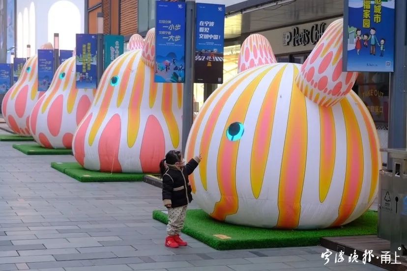 1月1日,宁波街头的新年氛围浓郁。天一商圈、鼓楼步行街等各商业体推出各色营销活动,以“兔元素”为主打的元素占据了“C位”,为市民和游客带来一份惊喜。