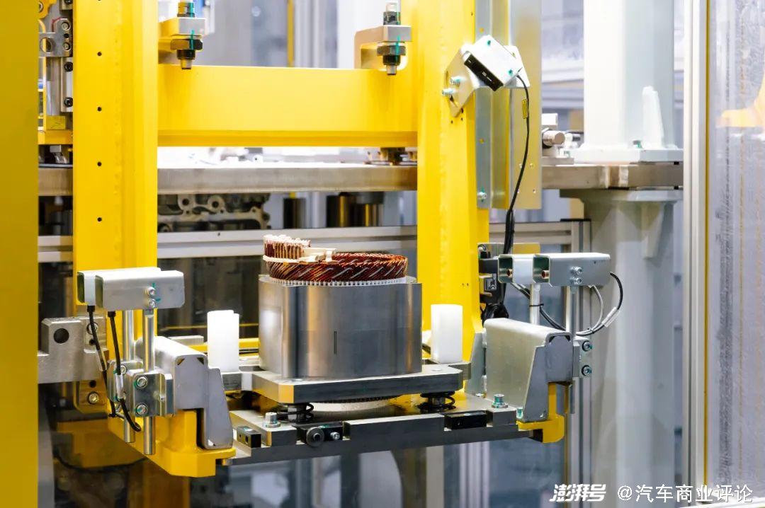 电驱车间首创模块化、柔性化的压装单元,8台柔性压装单元设备即可实现54个零件的高精度自动压装,未来可逐步实现2大系列、22种电驱子型号的共线生产。