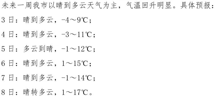 滁州最高气温为-3~-2℃