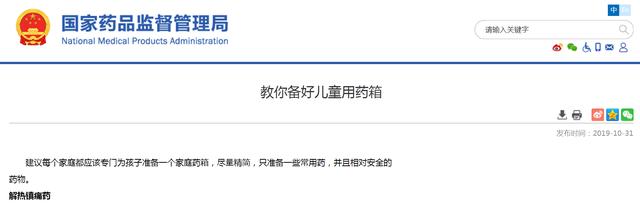 2019年10月,国家药品监督管理局在官网发布信息,指导公众如何在家准备儿童药箱。