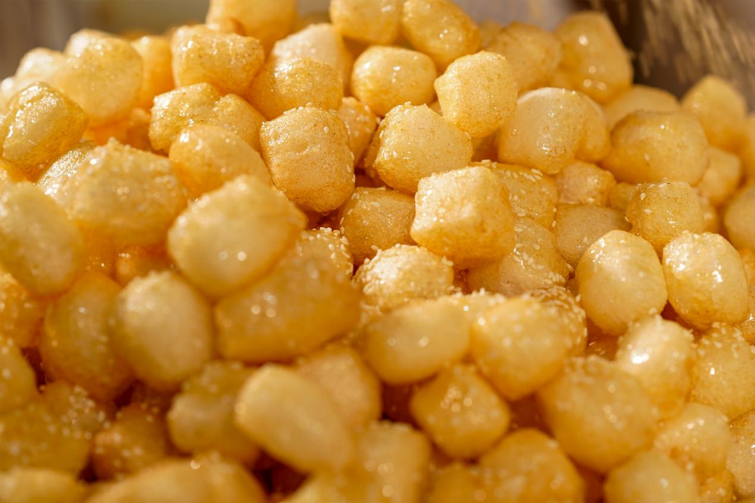 元谋泡果主要以糯米、蜂蜜、白芝麻、白糖、饴糖、香油为原料,从泡米、磨米、蒸、油炸、调制糖汁到成品制成,所有工序都严格按照传统技艺制作,无任何添加剂,是纯手工制作的传统美食。
