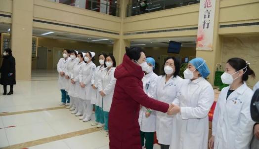 省妇联党组书记、主席李建平深入基层,来到医护人员身边,亲切询问医护人员身体情况和工作生活情况,叮嘱大家加强自身防护,注意劳逸结合,保持旺盛战斗力,赞扬广大医护人员面对疫情克服困难、勇往直前,全力护佑人民的生命安全的医者仁心和大爱无疆。