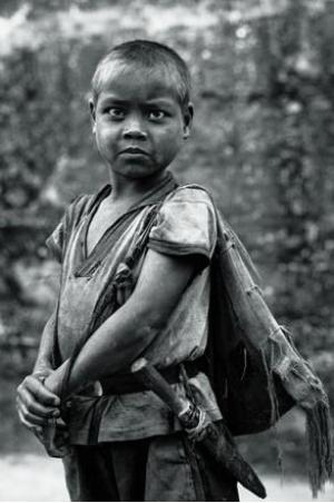 像这样的作品,是属于什么?这个家庭有四个孩子,老大17岁,刚被人贩子拐卖掉半个月了。我按下快门,我才在他家坐下来,才了解他们家的情况,所以这个家庭等于是完全是沉浸在一种悲伤的无可奈何的那个状态下。他们是水族,我当时曾经托了很多公安的朋友,想帮他家的忙,这个说实在的,我是非常的同情怜悯,但是一直帮不上忙,他们也有人亲自去找,但是,没有把女儿找回来。