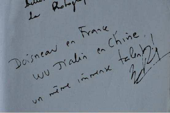 这个展览有很多很多的留言簿,我从厚厚的一本当中选了一条一个巴黎晚报的摄影记者写的:杜瓦诺在法国,吴家林在中国,他们都是摄影天才。当翻译翻译给我听时,我羞的面红耳赤。我说我怎么能跟杜瓦诺相提并论呢?我说这是胡扯。结果,翻译说,吴老师,你不要忘记,法兰西民族是很傲慢的,你一个山里人,如果你的照片不好,他会来捧你吗?所以我说实在的,我在巴黎就是一个梦。