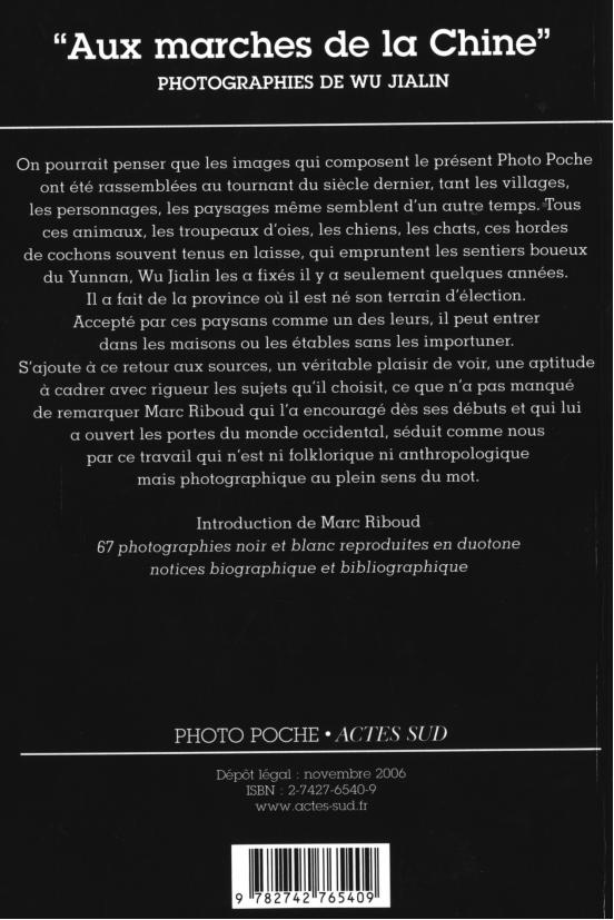 用他的话说,说我们西方人看照片,你这个7英寸的太小气了,要到12英寸看起来才舒服。所以他又重新去选,重新去编,这本《瞬间边地》的画册出来,再加上我第一本《云南山里人》,第二本《时光》,这三本书奠定了戴罗比尔下决心要出我的摄影“黑皮书”,这是我做梦都想不到的。最偶然的事情就是,有一位也是属于大师级的女摄影家叫莎拉·莫恩,后来我才知道她是戴罗比尔的夫人,她在南部时买了我一本《时光》,这本《时光》带回家去后被戴罗比尔看到了,戴罗比尔非常兴奋,马上就给马克·吕布打电话,说吴家林还在不在法国,马克·吕布说在,戴罗比尔说他要见我,马克·吕布当时就很兴奋,跟翻译说,这次吴家林有戏了,这个戴罗比尔平常躲人都躲不了,因为很多人都要请他出版“黑皮书”,这次竟主动要见吴家林,有戏了。