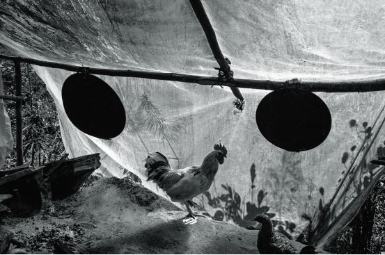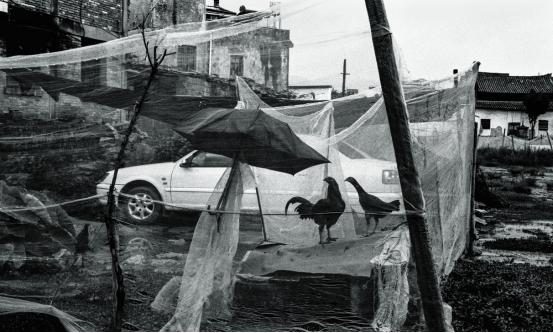 这个作品也是非常高级,非常艺术的装置艺术,装置艺术大师未必能够做到这个份上,但是我们普通农民,为了养几只好的斗鸡,他用这种方式来关鸡,害怕鸡被晒着还加了一把伞,这个太妙了。所以我觉得我们普通老百姓,有时候他们做的作品可以称为大师级别,我仅仅是发现并把它如实的记录下来而已,这也是我非常欣赏非常喜欢的作品,马克·吕布看到这个作品感动的不得了,说你这张这照片就代表了你这一本书的所有作品的最高水平。