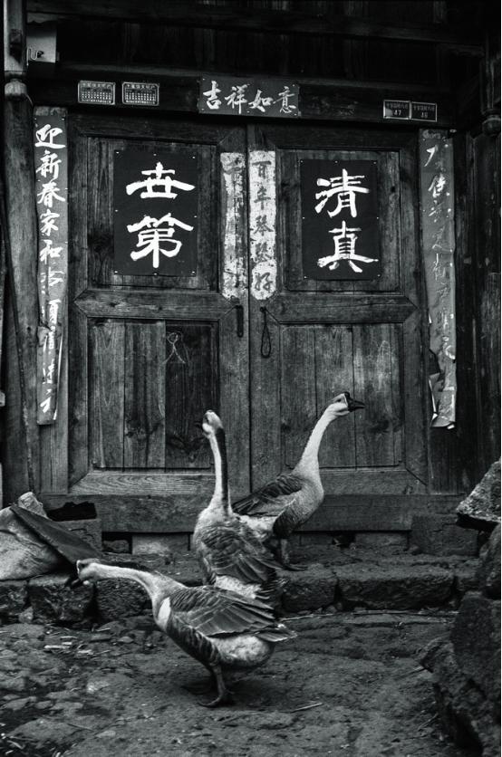 这张作品又验证了我一句话,我经常在说,就是题材决定之后,拍什么不重要了,怎么拍才重要,如果这三只鹅没有形成这种结构,绝对是一张废片,但是它形成这种结构就太美了,它是活物,又是有灵性的东西,再加上这个环境背景,一下子就很就耐人寻味的。这张作品04年在法国艺术博物馆展出的时候被马克吕布做成海报,后来这个海报一直在马克吕布家的左右两扇门上贴了十多年。他为什么要贴?他说这是个标志,就是方便中国摄影师去拜访,他们一看到这个照片就知道这绝对是马克吕布家,很有意思。