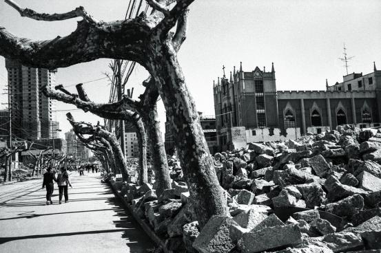 这是一个基督教堂,恰巧昆明的那一段街道在扩充,这个也是很超现实的,这个树都修掉了,其实是留下了昆明建设的一段历史,但是挺美挺美,不是那种只有高楼大厦的亮丽风光才叫美,我觉得这个也是一种美。