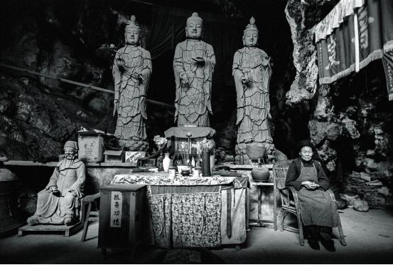 哎呀,这些照片很耐看,便是导演也很难很难导出来的。这是我的家乡,我的故乡老金庙里。这其实是我妈妈的一个老朋友,我妈妈在五一年辞了职之后,就没有生计了,要养活我们,然后就到寺庙里边去做活,交了一个尼姑朋友,终身的朋友,这个人我们都称他刘师兄,刘师兄就在老金庙里边守着这个东西,老金庙里边有老金,还有些各种各样的菩萨,我都没有去拍那些东西,这是刘师兄生活的一个部分,就在庙宇里边,太精彩了。