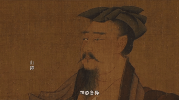 据考证,此图为《竹林七贤》残卷,四个人物分别为山涛、王戎、刘伶和阮籍。