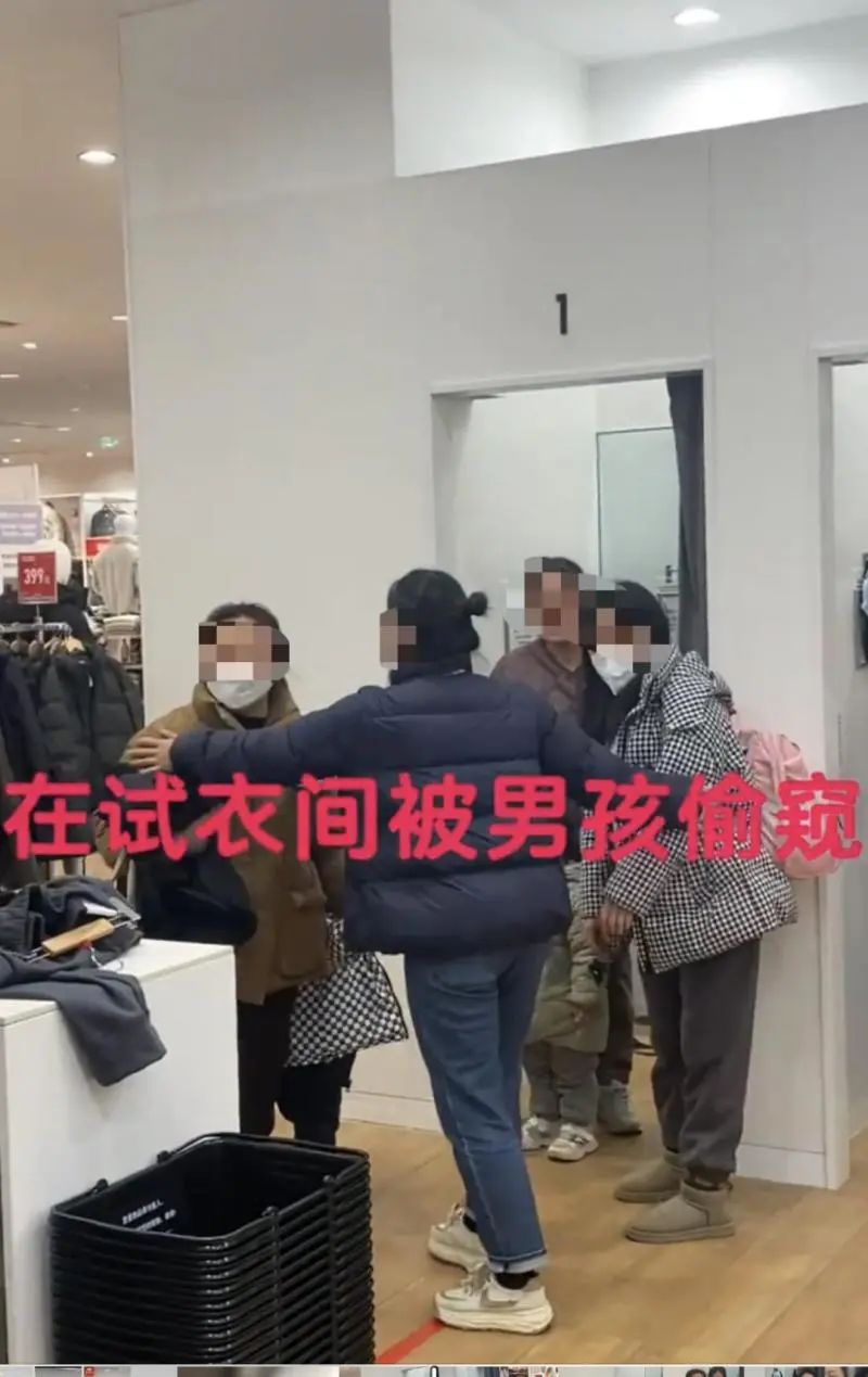 1月4日凌晨,一名女性网友发文称,3日晚上在优衣库试衣间换衣时被男孩偷窥,还被家长骂了,并且被抢夺手机。从该女子发布的视频显示,女子质问是谁在骂人,这时一名身穿驼色外套,戴着口罩的女性抱着衣服、提着包走过来,称“我骂的”,之后一名身穿格子外套的女性上前抢夺手机。