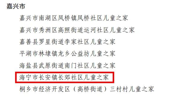 原标题:《喜报!长安镇长郊社区儿童之家获“浙江省示范型儿童之家”》