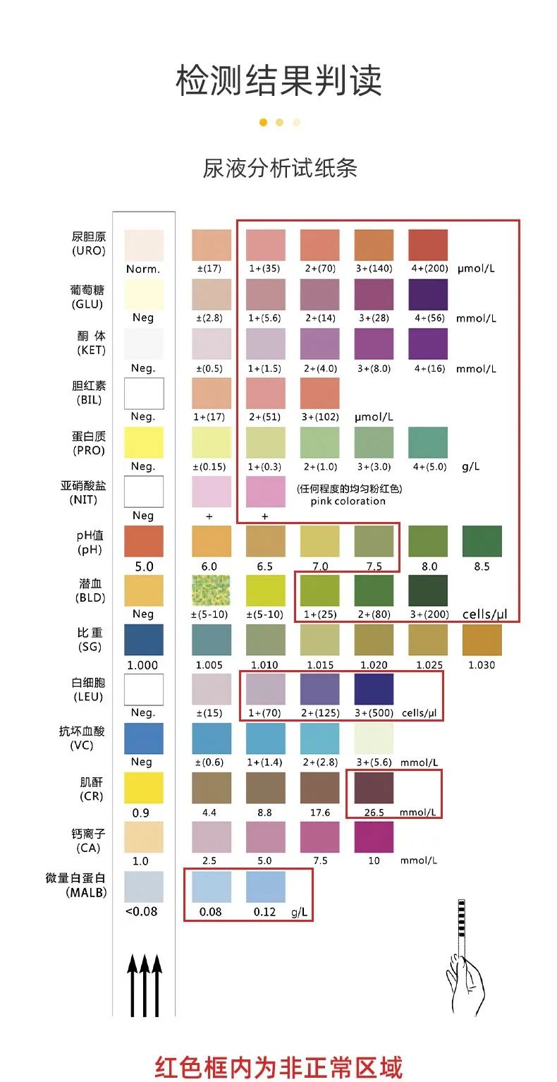 尿常规试纸尿常规是临床三大常规检查项目之一。尿液中含有很多人体代谢产物和其他活性物质,可以反应机体的代谢状况,也可以作为某些肾脏疾病、尿路疾病等的参考。