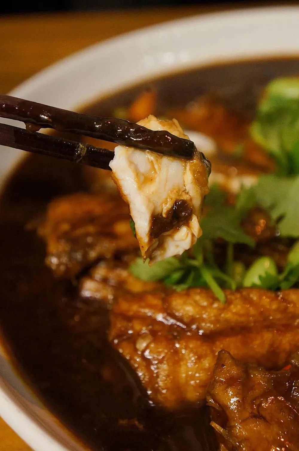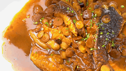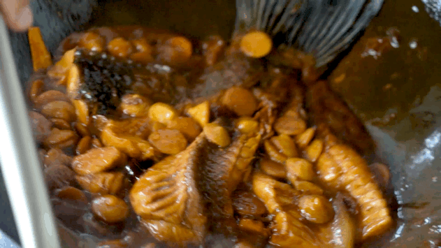红烧的酱汁 极其入味鱼肉的鲜香 随着热气蹭蹭地冒出