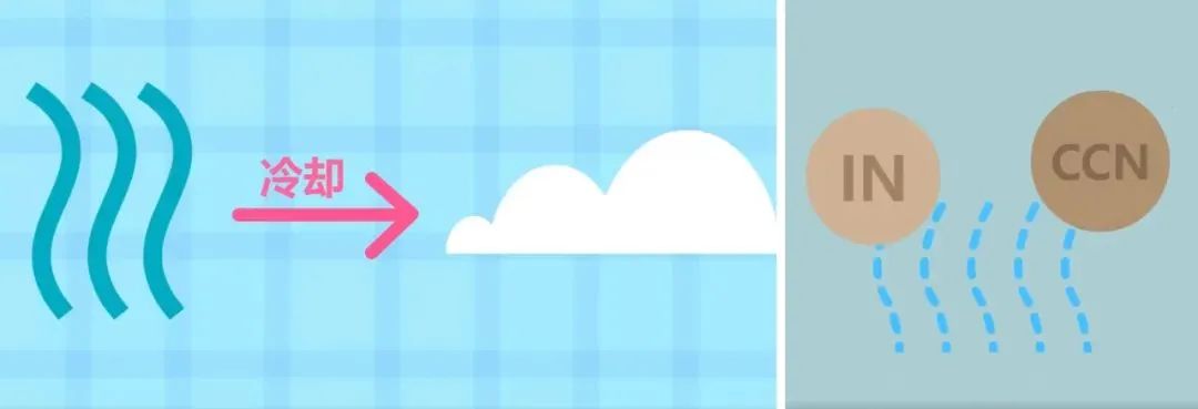 通过一个成云致雨的例子来解释协同作用:通常水蒸气在高空冷却后会形成云,过量的水蒸气往往不能自发形成云颗粒,而是冷凝在用作云凝结核或冰核的气溶胶颗粒上。污染排放会导致微小颗粒物气溶胶的增加,气溶胶作为云的凝结核,会导致污染地区云中液滴数浓度的增加。