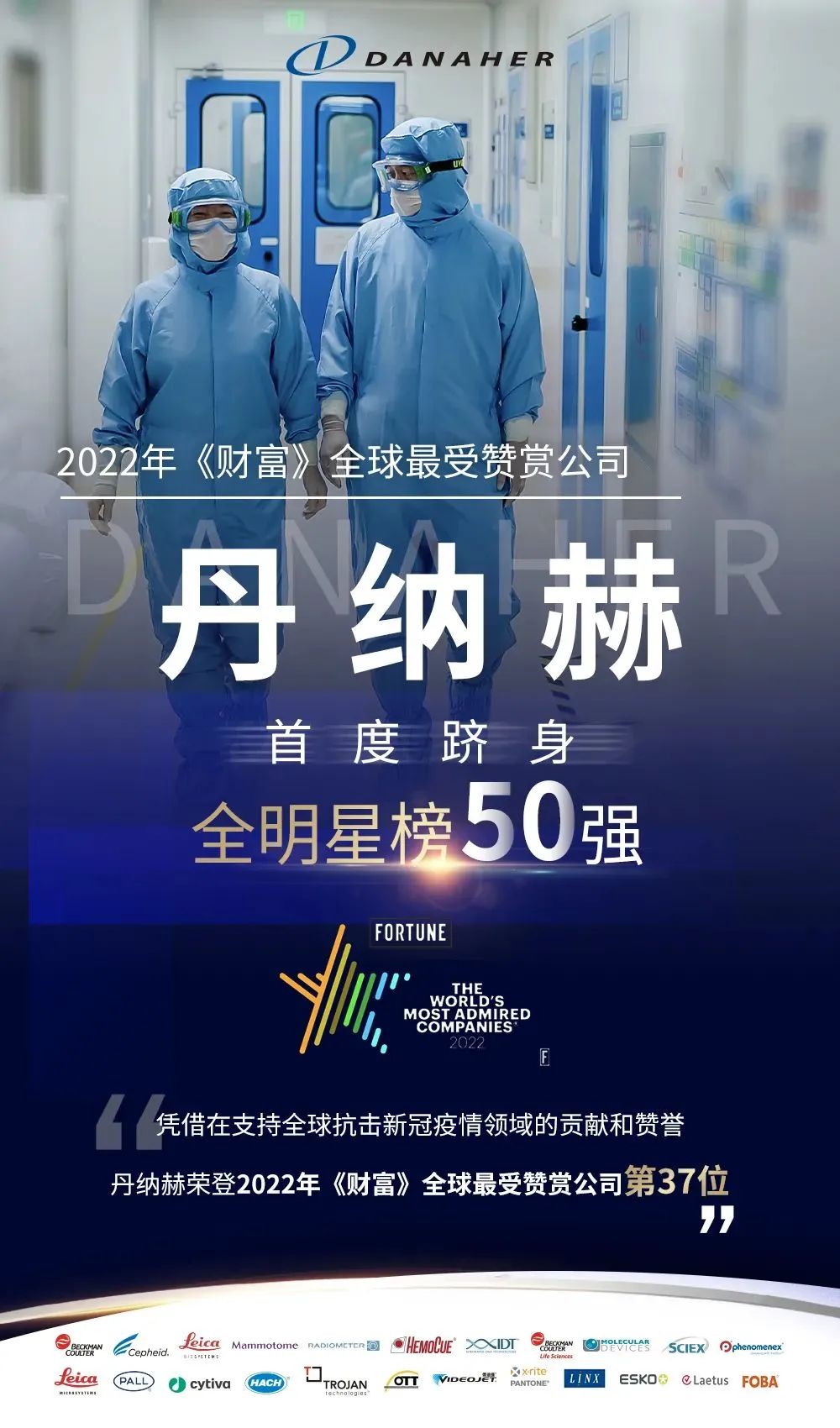 上海是丹纳赫在华联合总部所在地。去年,凭借在支持全球抗击新冠疫情领域的贡献和赞誉,丹纳赫跻身2022年《财富》全球最受赞赏公司全明星榜50强,并入榜2022年《财富》世界500强。